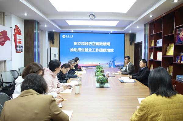 在认真听取与会人员关于今年工作的计划和举措汇报后,陈始发对招生与就业工作的成绩和安排给予肯定。他指出,要统筹全年重点工作,咬定目标不动摇,以更高标准加快任务落地;要锤炼状态、协同发力,各司其职,拿出过硬成绩,将招就处打造成学校招生就业工作的“过硬指挥部”;要提前谋划,扎实做好就业困难学生的兜底帮扶,强化担当作为,全力推动招生就业工作提质增效。