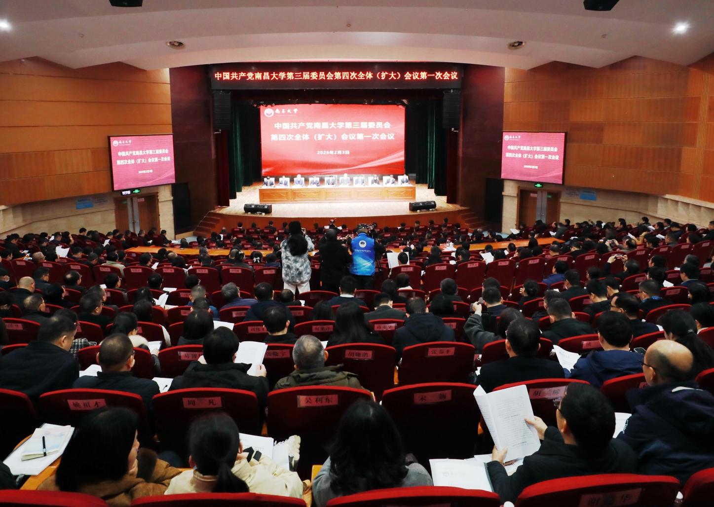 2月3日,中共南昌大学第三届委员会第四次全体(扩大)会议召开。会议坚持以习近平新时代中国特色社会主义思想为指导,深入贯彻党的二十大和二十届历次全会精神,重温笃行习近平总书记视察南昌大学重要讲话精神,全面落实全国、全省教育大会精神以及省委十五届八次、九次全会部署,深化落实学校第三次党代会精神,回顾总结2025年及过去十年工作,分析当前形势,研究部署2026年和未来五年任务,以科学编制和实施“十五五”规划为统领,加快推进“江西底色、中国特色的世界一流大学”建设,以高质量发展的实干实绩回报习近平总书记的殷切嘱托和省委、省政府的全力支持,为推动江西高等教育整体提升、奋力谱写中国式现代化江西篇章作出新的更大贡献。
