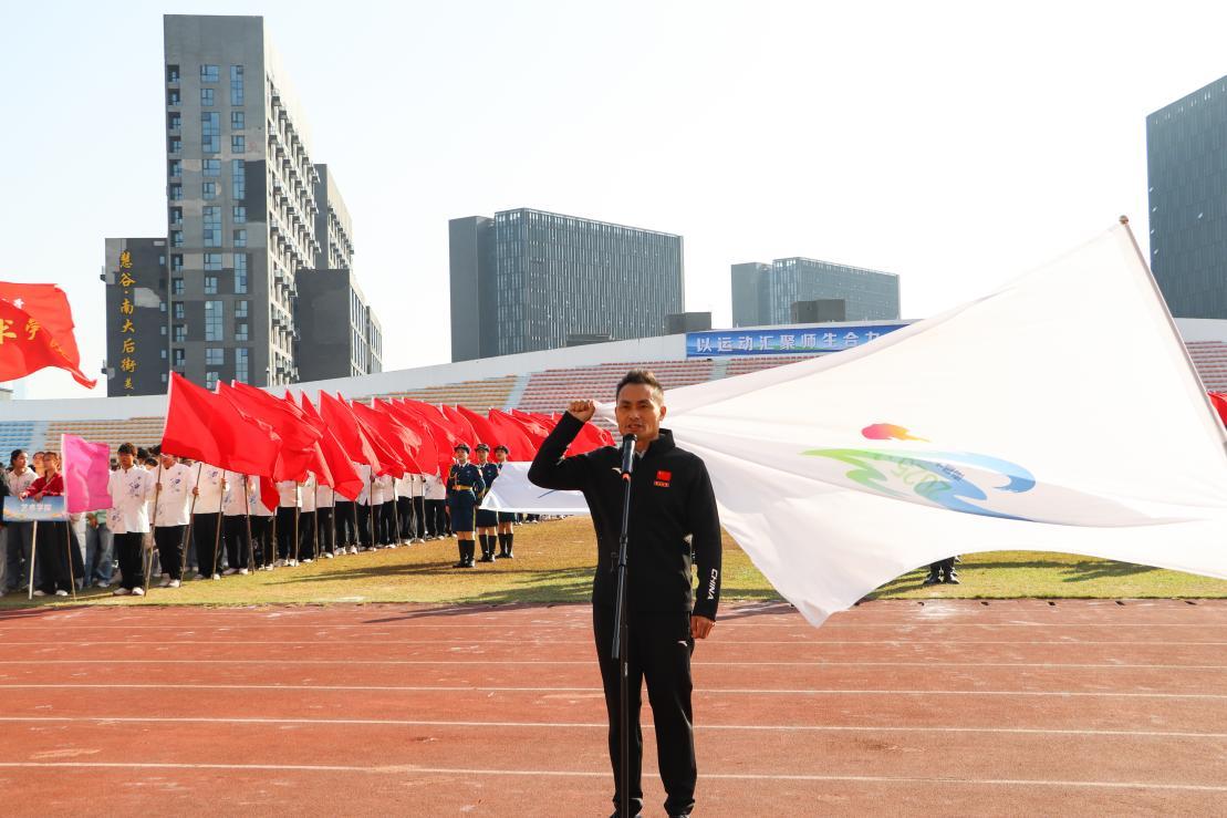 运动员代表、人文学院2022级学生廖梓汐,裁判员代表、体育学院教师吴斌分别宣誓,表示将公平竞争、公正执裁,共同守护赛场的秩序与荣誉。